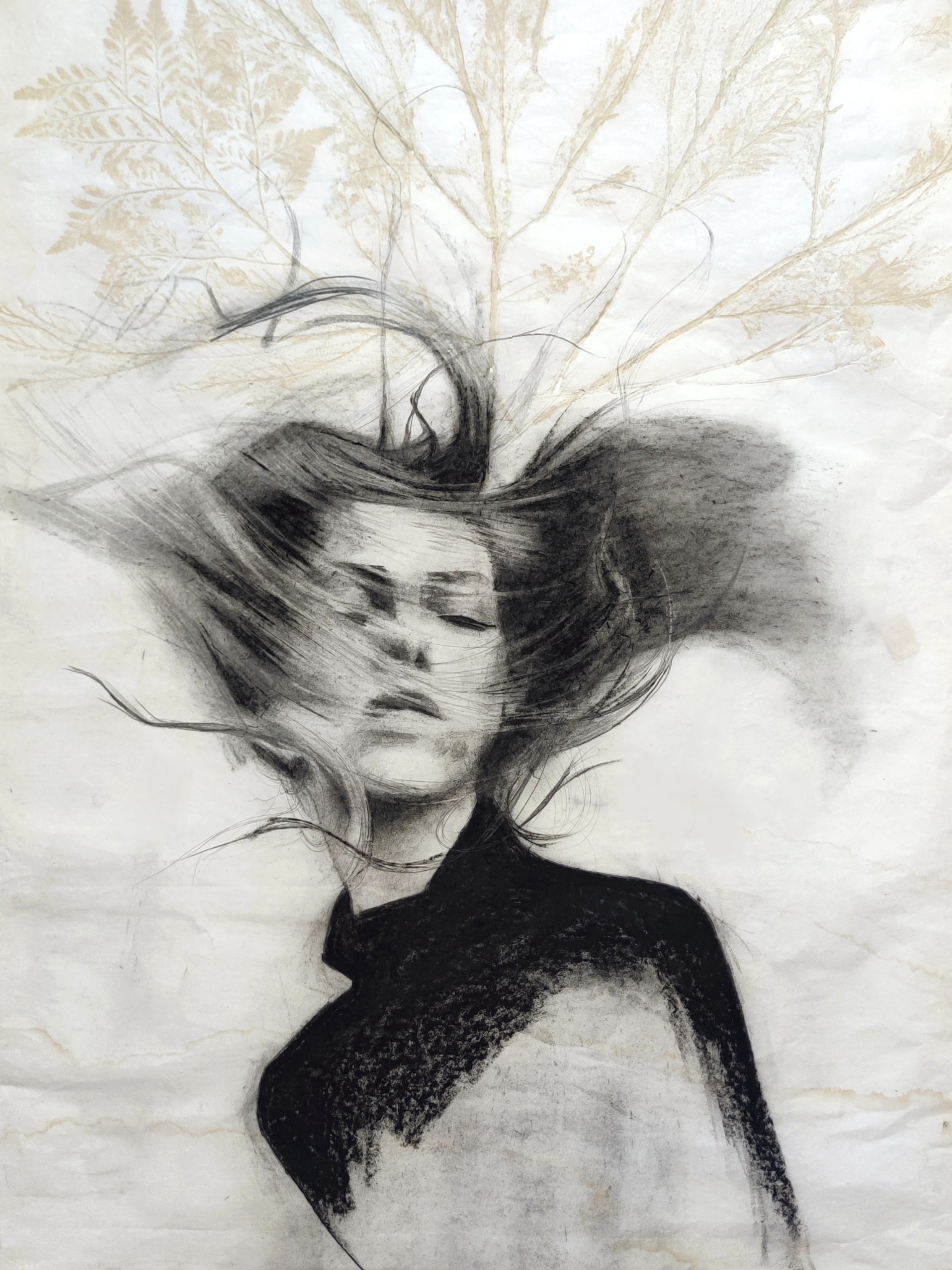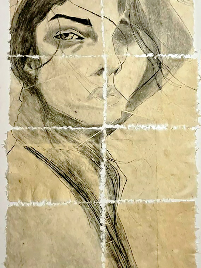 La huella, motor de búsqueda y desarrollo de mi obra. Desde diferentes enfoques, busco un diálogo entre la obra y el espectador. Invitar a la reflexión desde la poética y la metáfora visual fusionándolo a modo de sinestesia, con la música. Aspectos tanto sociales e íntimos de la mujer; poner en cuestión comportamientos del ser humano y lo que con ello va dejando a su paso; señales registradas que quedan tras lo acontecido dejando la evidencia de un PRESENTE CONTINUO, que tras el desgaste del tiempo, el uso y el desuso, actúan como pistas tanto en el mar y sus entornos, como en el interior del ser. Me interesa mucho la texturas como piel de la materia por ello me fascina el papel y el hecho de que la obra al completo, este realizada desde la propia materia prima haciéndole un guiño a la mejora del medio ambiente, que, de esa forma, lleva el mensaje de la huella intrínseco en el propio proceso de creación.